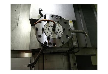 4)采用液壓轉(zhuǎn)臺實現(xiàn)B軸運(yùn)動,實現(xiàn)專用鵝頸刀具自動進(jìn)刀,進(jìn)行差速器殼內(nèi)球面、內(nèi)階面的加工