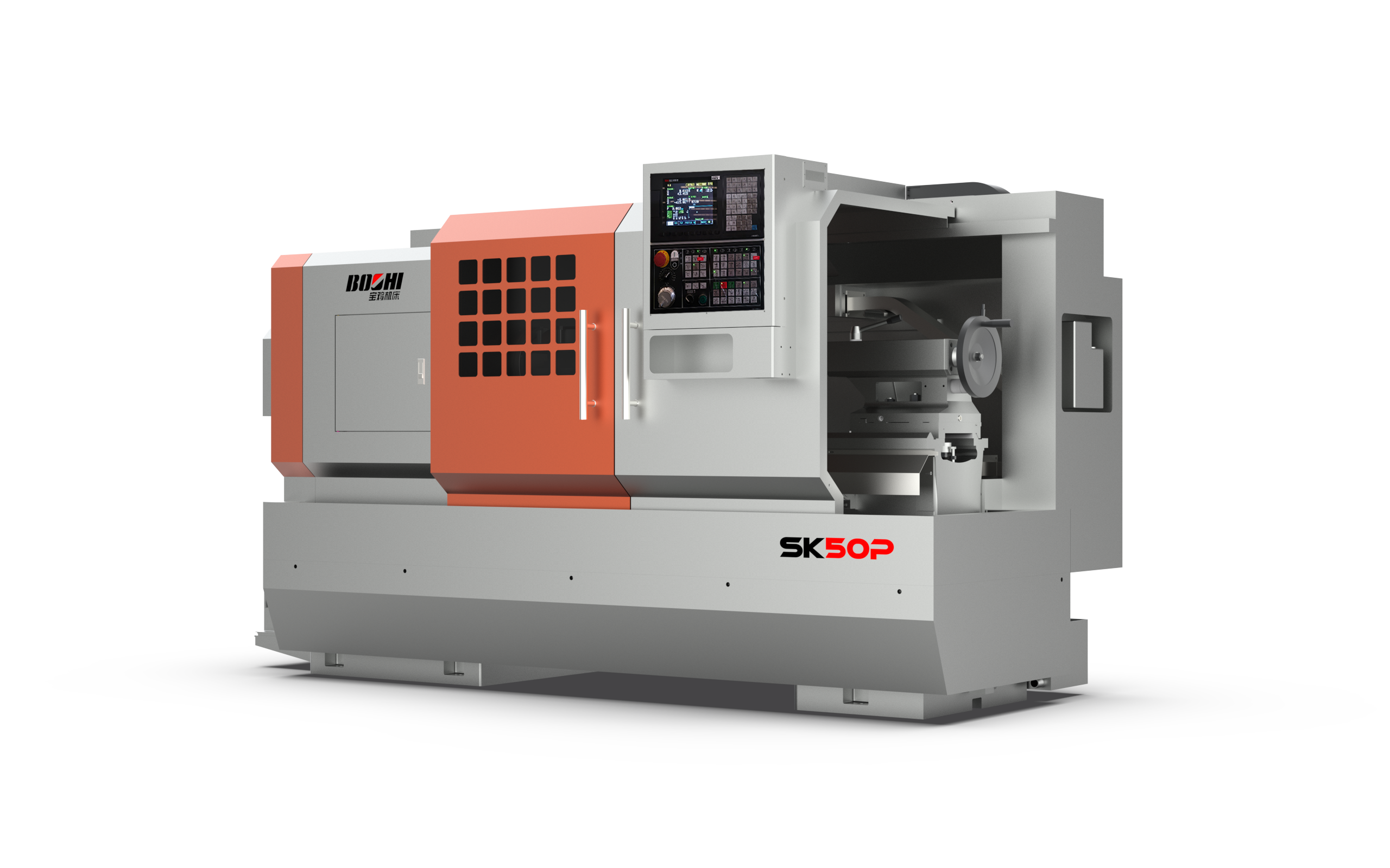 SK50P series lathe is an Economic CNC lathe driven by servo motor. Either 4-station turret (standard equipment) or 6-station turret can be equipped for cutting different shapes of workpieces. The lathe has beautiful guard. Its well designed sliding door is easy to use and functions as a protector of operators’ safety.